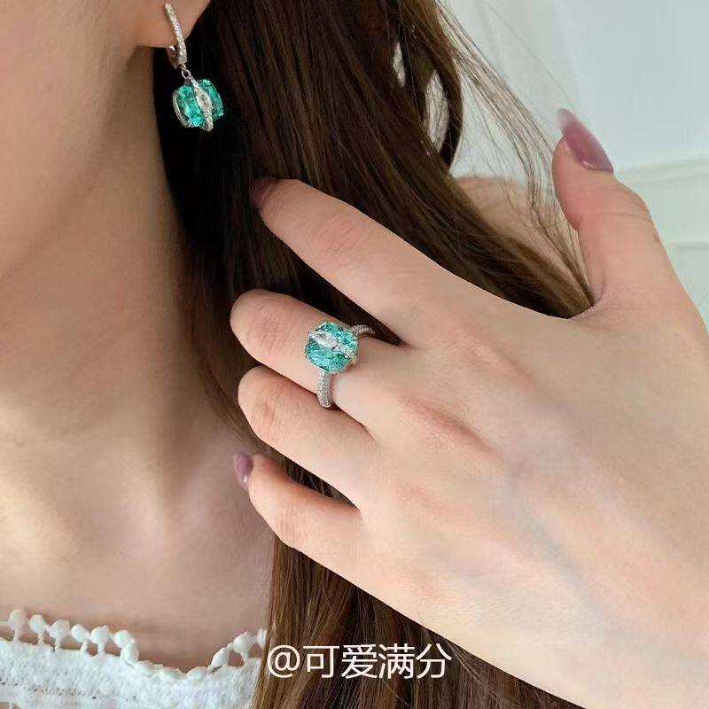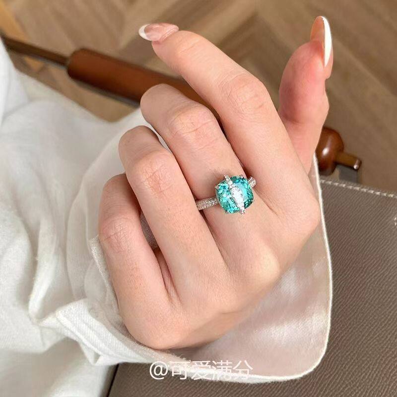 薄荷曼波爆闪小方糖锆石戒指中古重工高级感气质显白食指戒小配饰