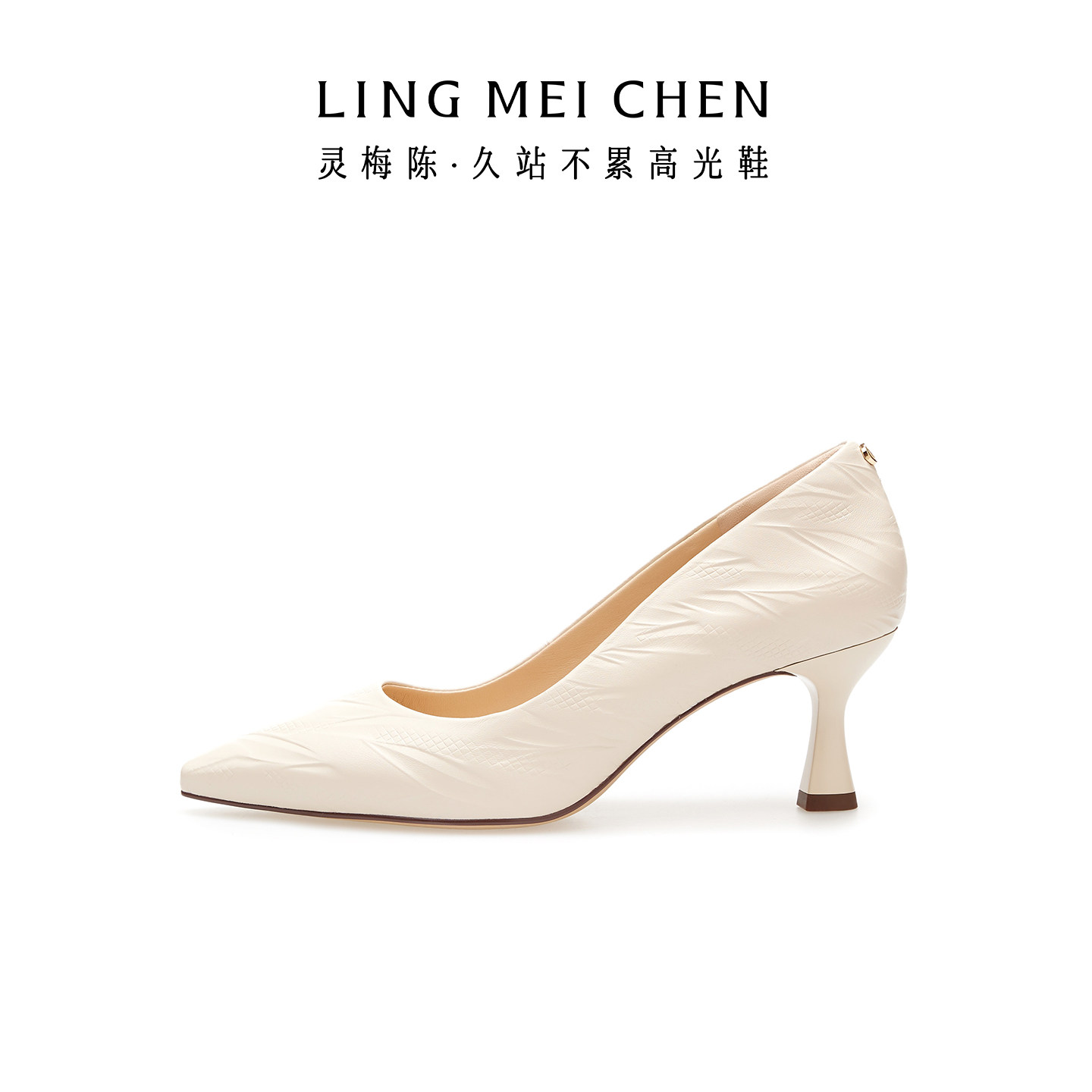 LINGMEICHEN麦穗高跟鞋空气棉超软羊皮酒杯跟女鞋尖头旗袍鞋单鞋