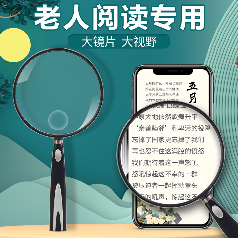 放大镜高清老人阅读高倍超大1000视野看报手机维修手持扩大镜非球面老年人专用看书说明书儿童学生便携式100