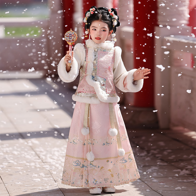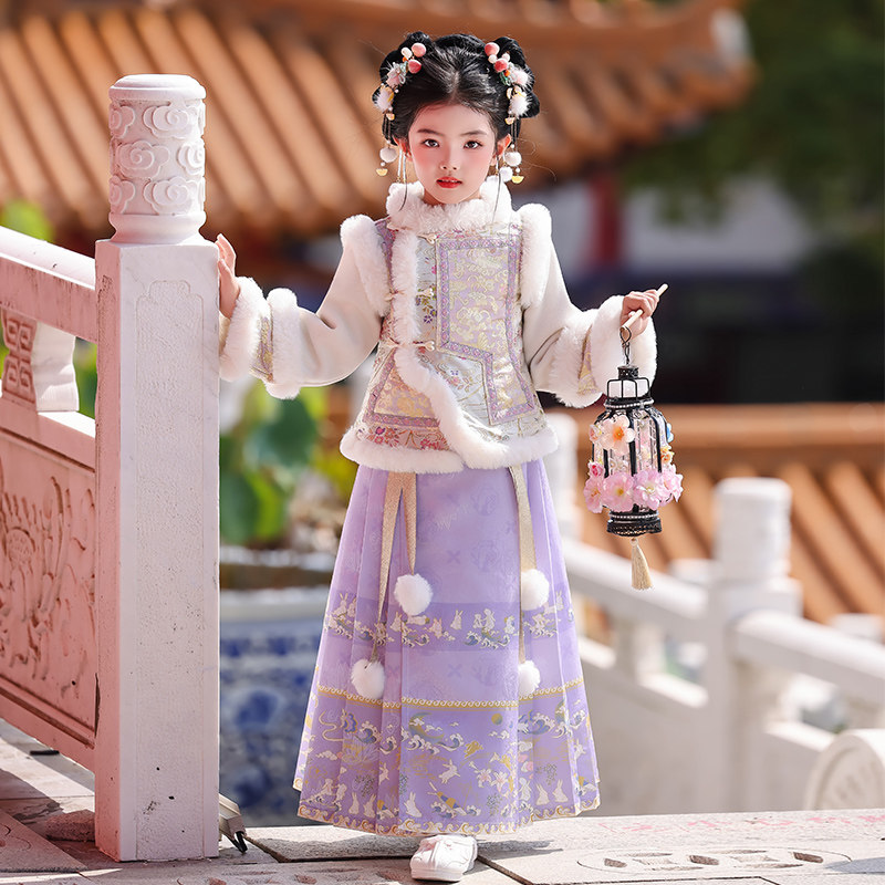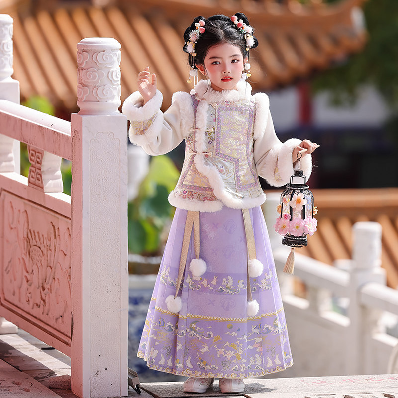 女童汉服拜年服套装国风公主裙子冬季2025新款儿童格格服加绒紫色