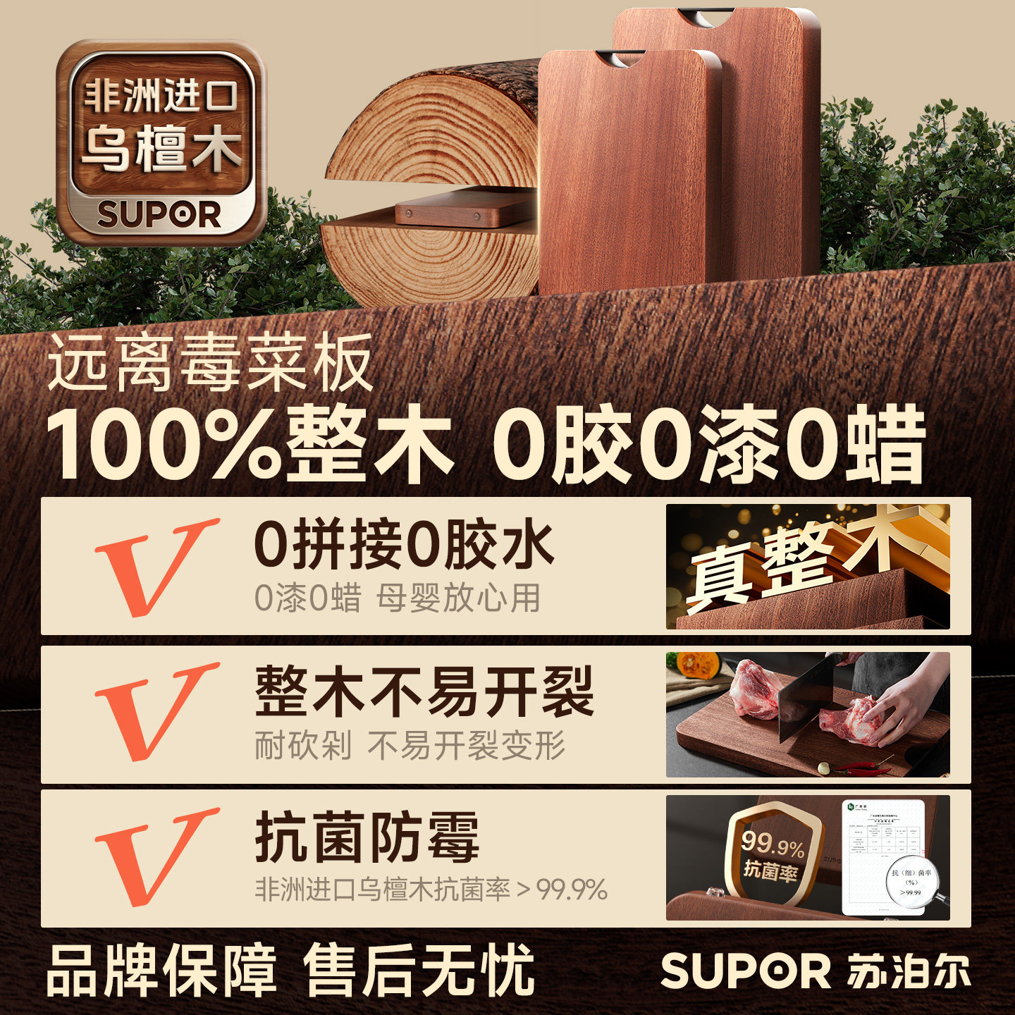 苏泊尔菜板家用实木切菜板抗菌防霉整木案板水果砧板双面板旗舰店