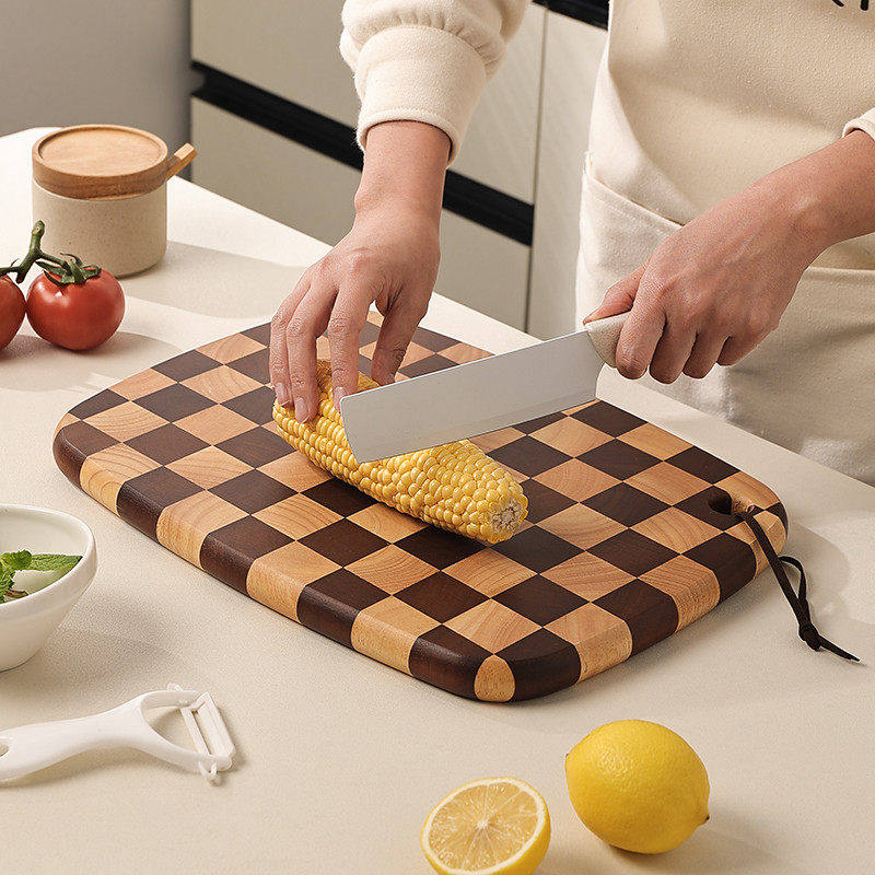 相思木棋盘格菜板网红防霉实木砧板厨房案板子切菜板婴儿辅食粘板