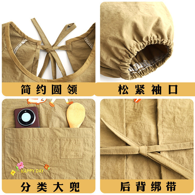 新款棉布耐磨围裙长袖厨房家用防污罩衣透气围腰做饭上班工作服女