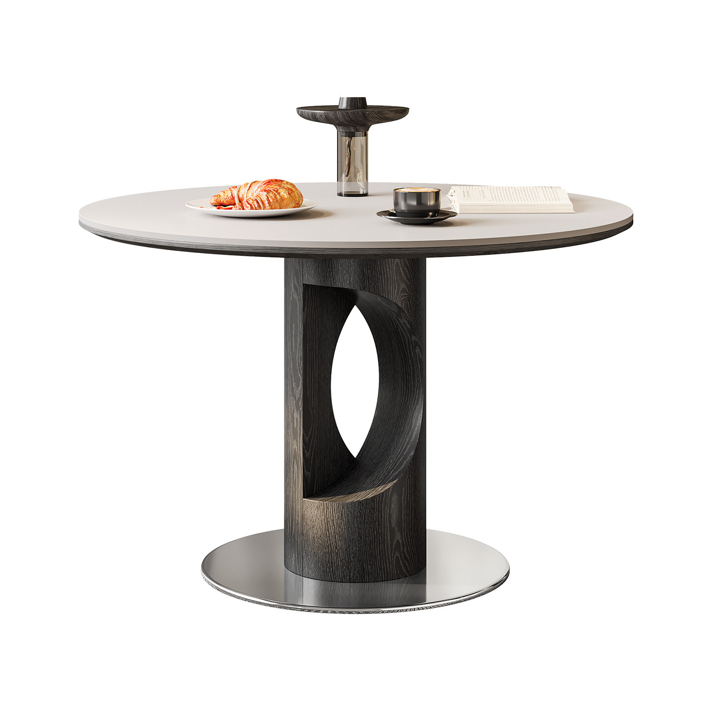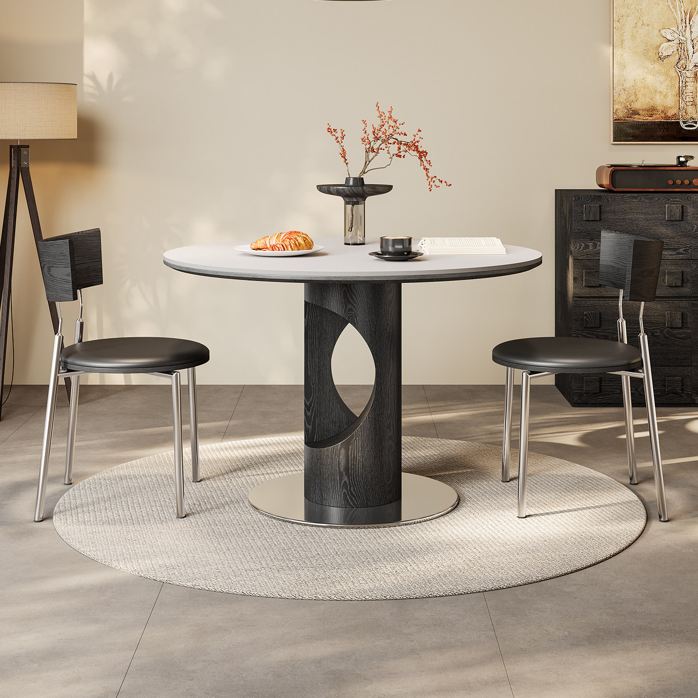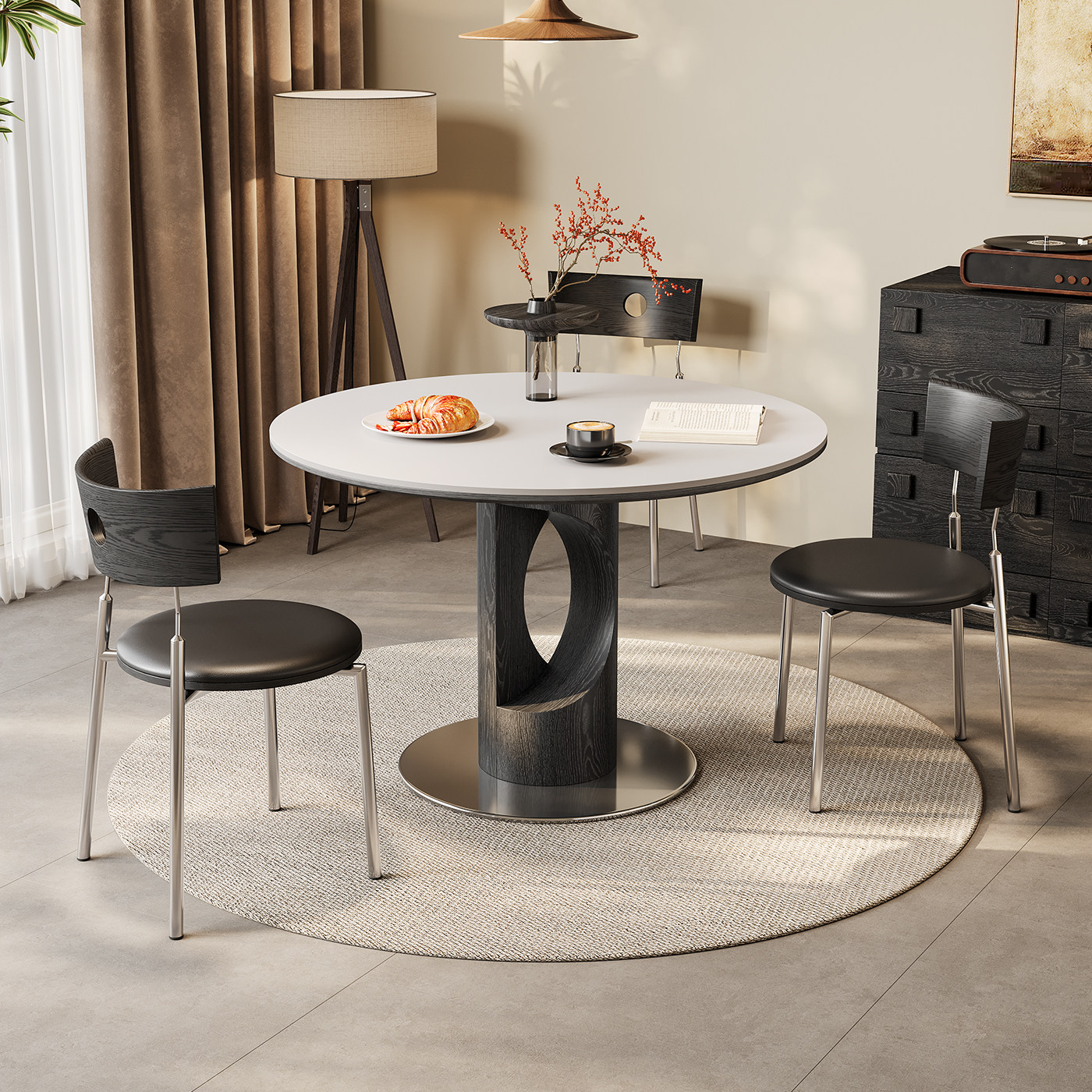 实木岩板餐桌圆形小户型家用饭桌高端2025新款法式复古1.2米餐桌