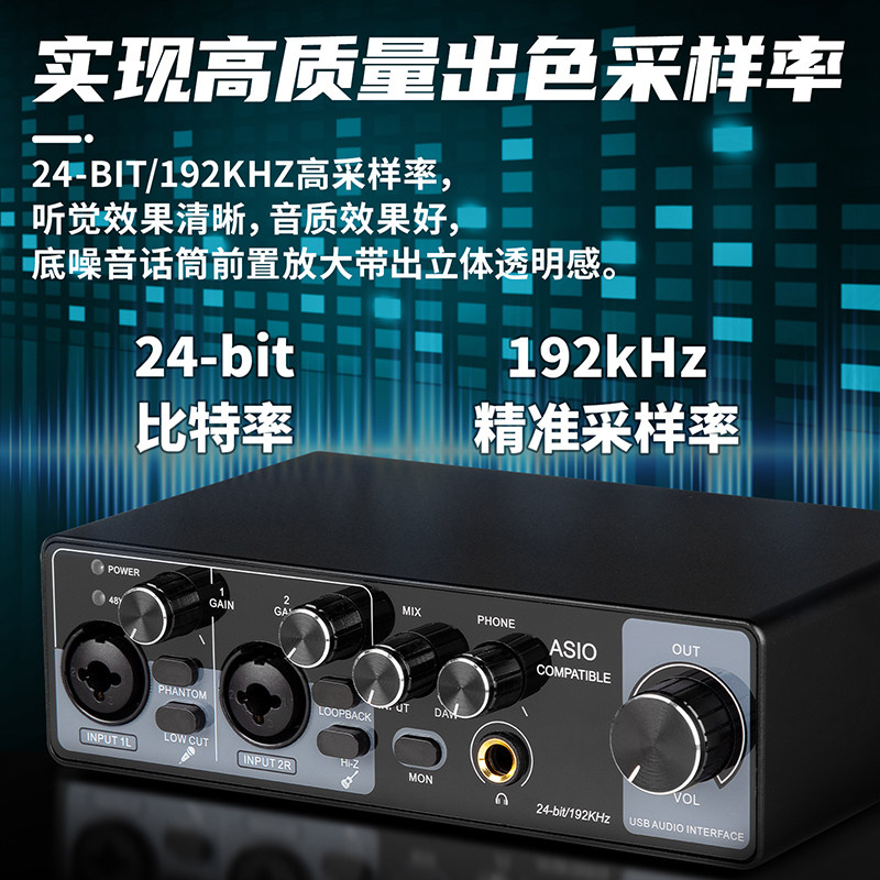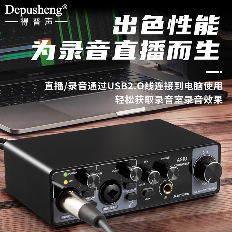 得普声MR22手机直播声卡电脑录音编曲吉他乐器收音唱歌专业带驱动