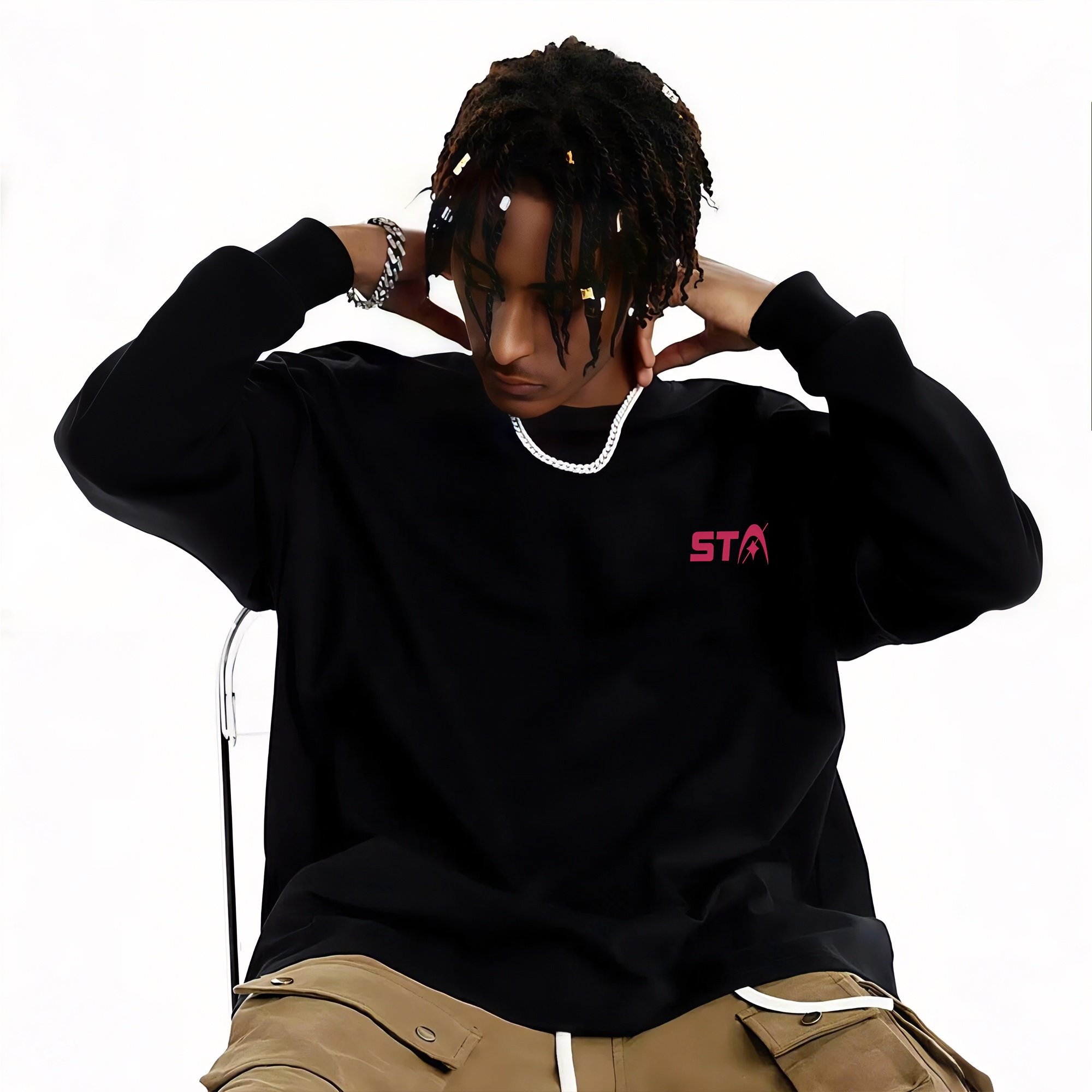STA旗舰店美式字母印花长袖男女潮牌高街重磅纯棉宽松情侣卫衣