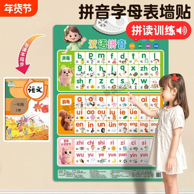 汉语拼音字母表墙贴有声挂图学点读发声书幼小衔接音标汉字发音
