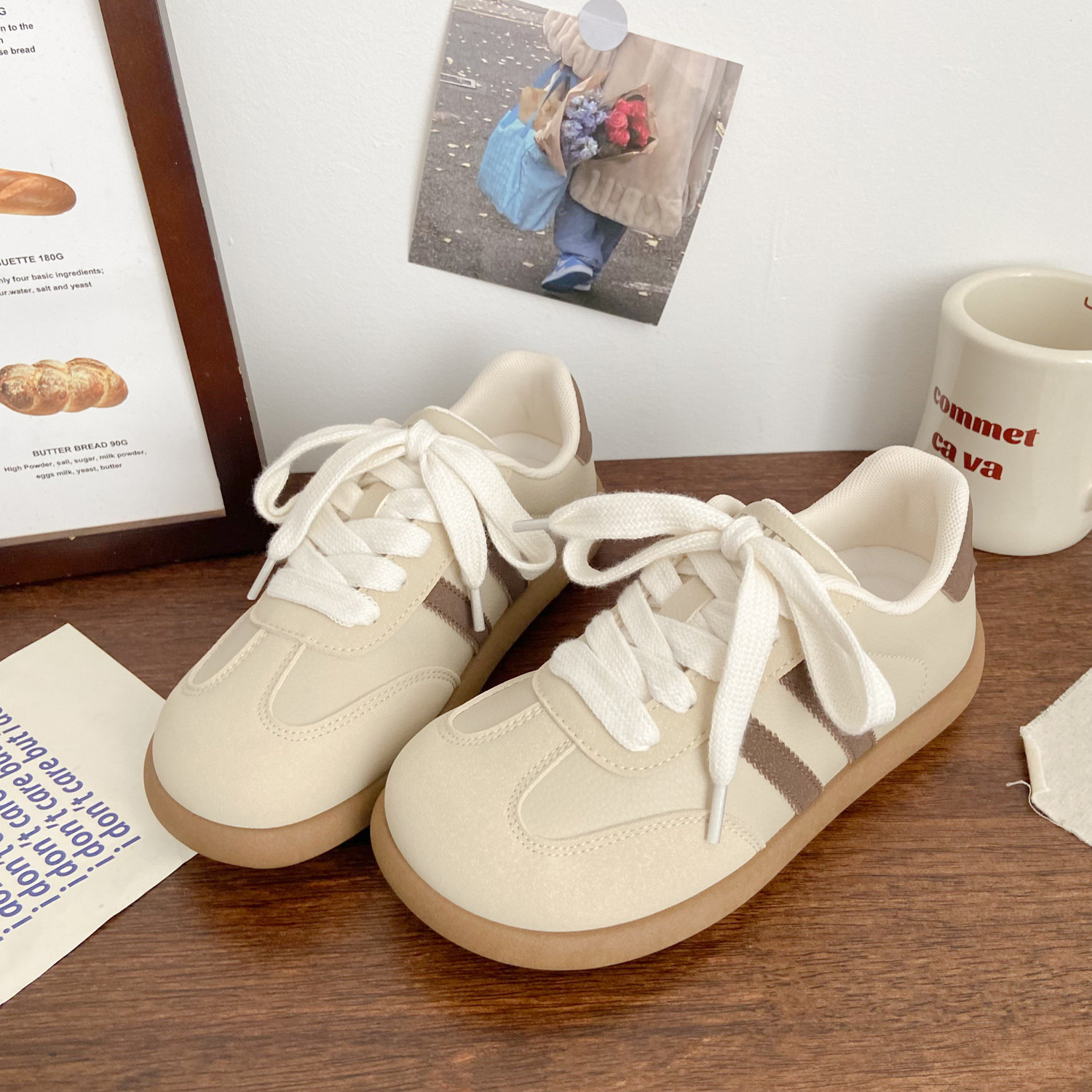 运动鞋厚底休闲板鞋女2025秋冬女款新款米色加绒女鞋内增高德训鞋