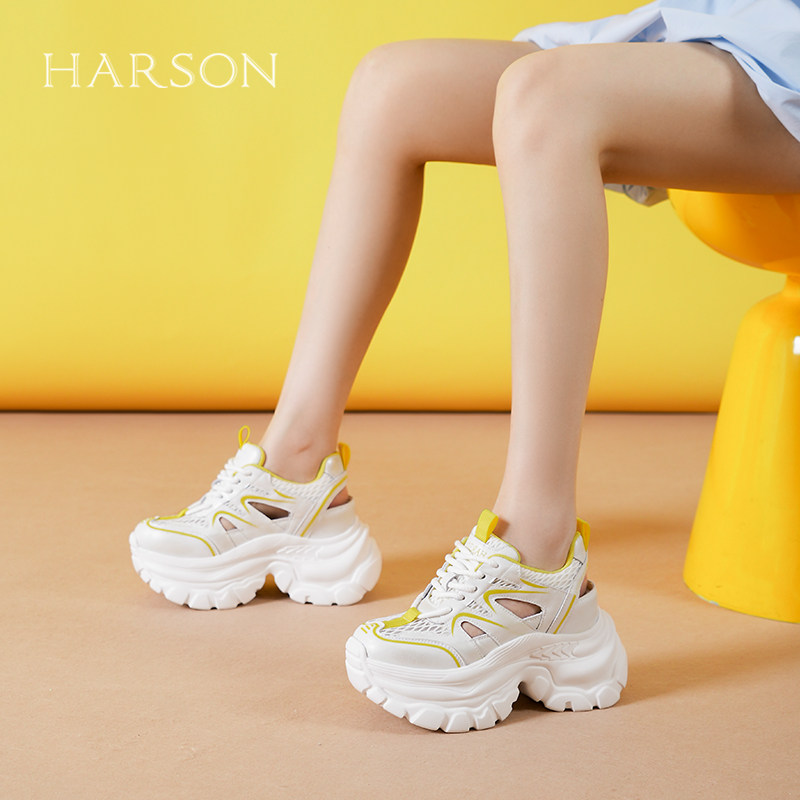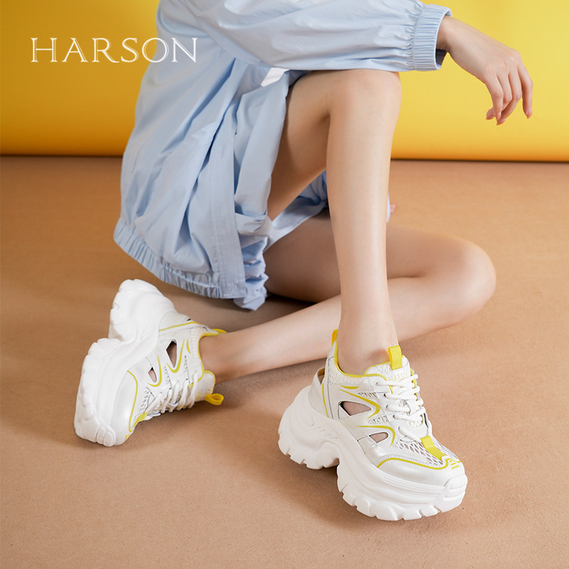 哈森休闲凉鞋夏季新款运动时尚镂空厚底内增高女鞋HWM250131
