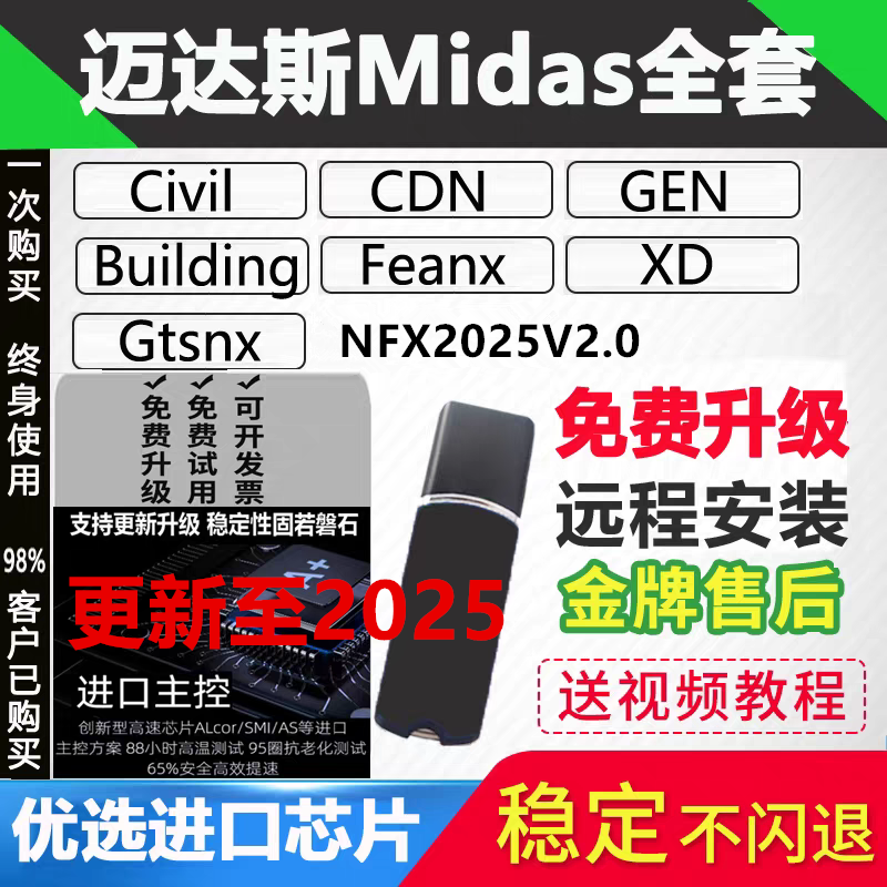 迈达斯midas civil2026加密狗gen2024迈达斯加密狗GTS NX2026fea/迈达斯软件加密锁狗