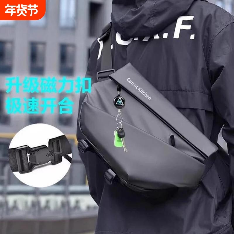 磁吸扣男士斜挎包大容量机能胸包通勤骑行机车背包运动单肩包防水