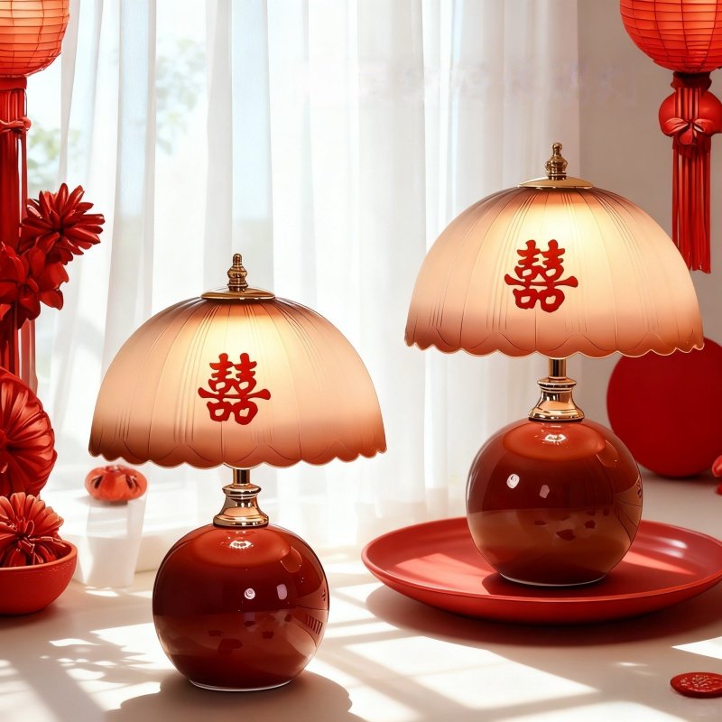结婚台灯婚房床头灯一对喜灯酒红色陪嫁长明灯送新人新婚礼物婚礼