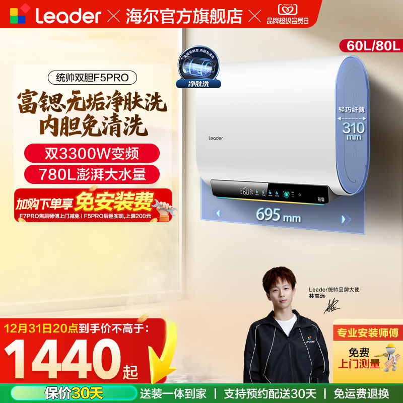 【国家补贴】海尔出品统帅电热水器家用一级能效扁桶节能F5PRO