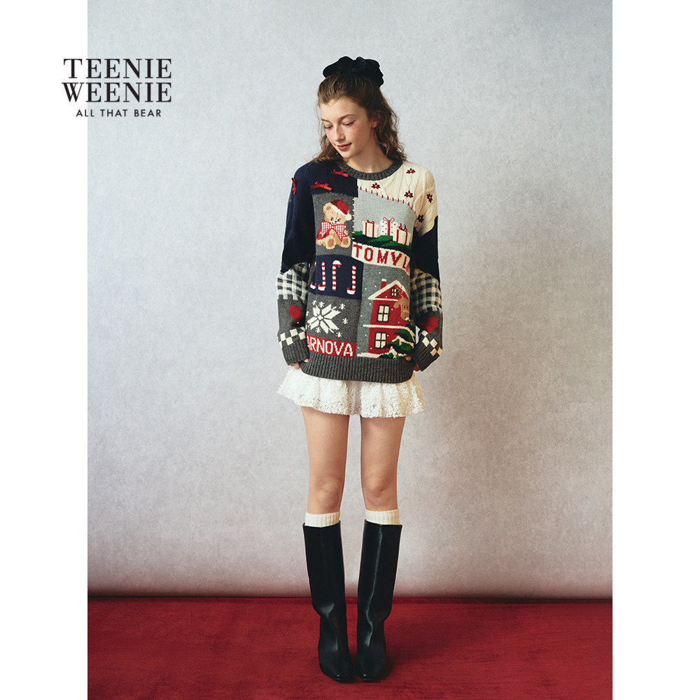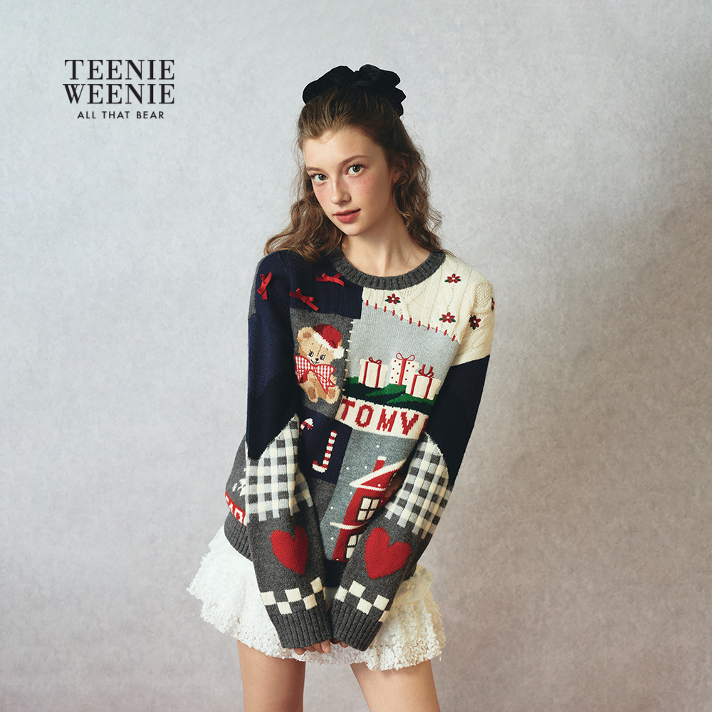 TEENIEWEENIE bearnova25冬新款女装节日氛围感重工嵌花圆领毛衣