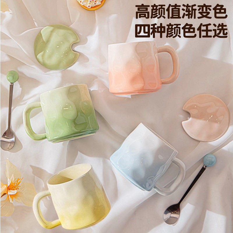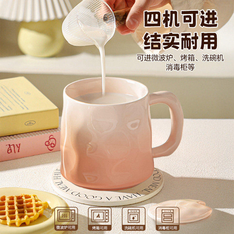 家用客厅陶瓷2026新款高级感颜值渐变马克杯咖啡杯早餐带盖女士