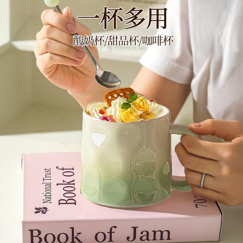 高颜值渐变马克杯家用女生喝水杯设计感陶瓷杯子情侣早餐杯咖啡杯