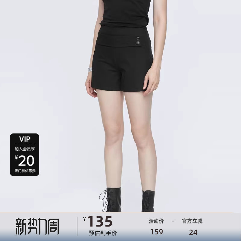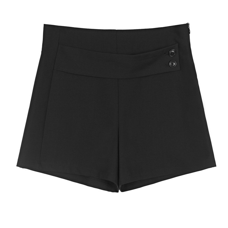 sdeer圣迪奥休闲简约拼接高腰黑色A字短裤S21260928
