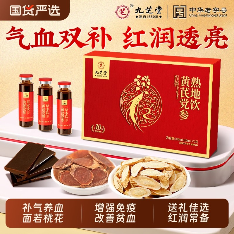 九芝堂阿胶黄芪红参党参补血口服液浆女贫补气血铁官方旗舰店正品