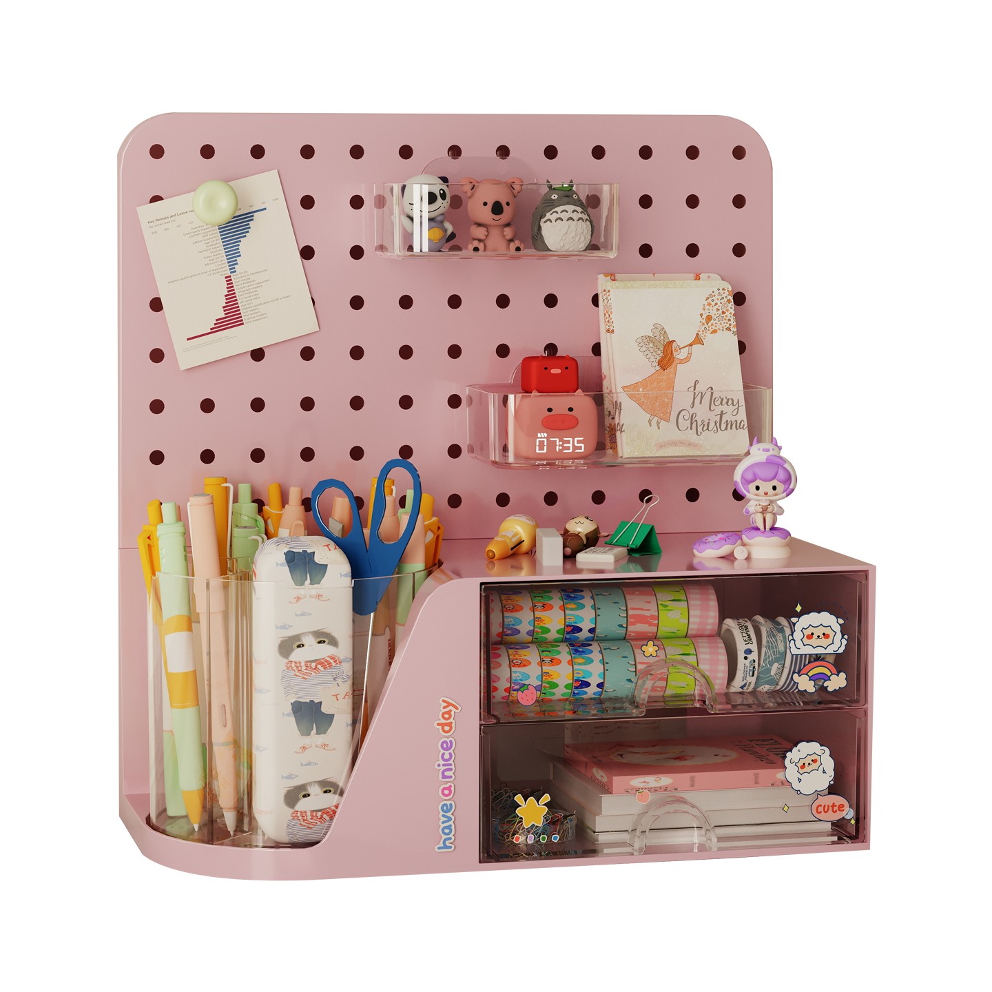 洞洞板桌面书架旋转笔筒分类收纳置物架桌上板家用学习收纳好物学生成人通用款桌面扩展高颜值简约大容量DF