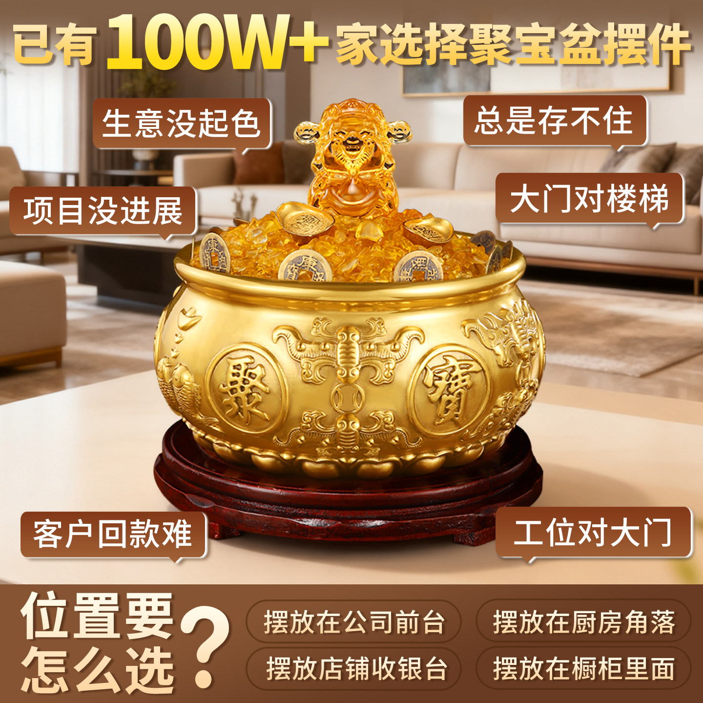 聚宝盆摆件招财聚财存钱罐黄铜家用客厅店铺前台米缸开业礼品桌面