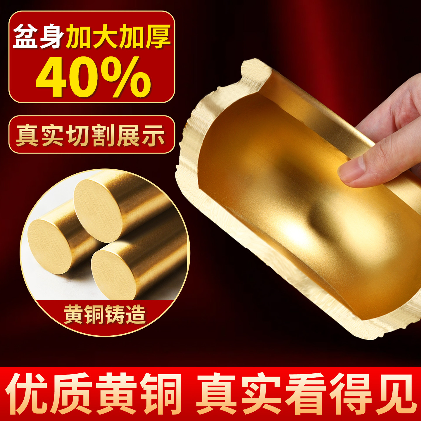 黄铜实心沙金元宝摆件道具财神客厅聚宝盆店铺装饰品开业乔迁礼品