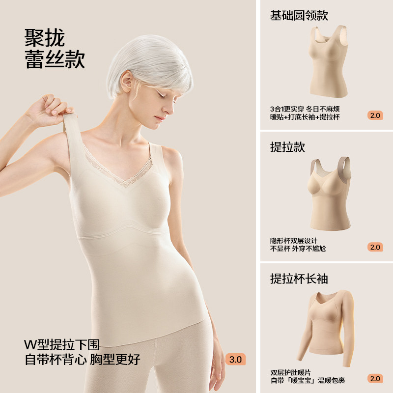 【胡可推荐】梦芭蒂带胸垫秋冬保暖背心女加绒打底裤上衣女士