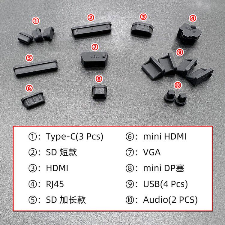 笔记本电脑防尘塞USB接口防尘盖联想戴尔华为华硕惠普微软外星人小米宏基通用保护盖SB口+HDMI+网线+耳机