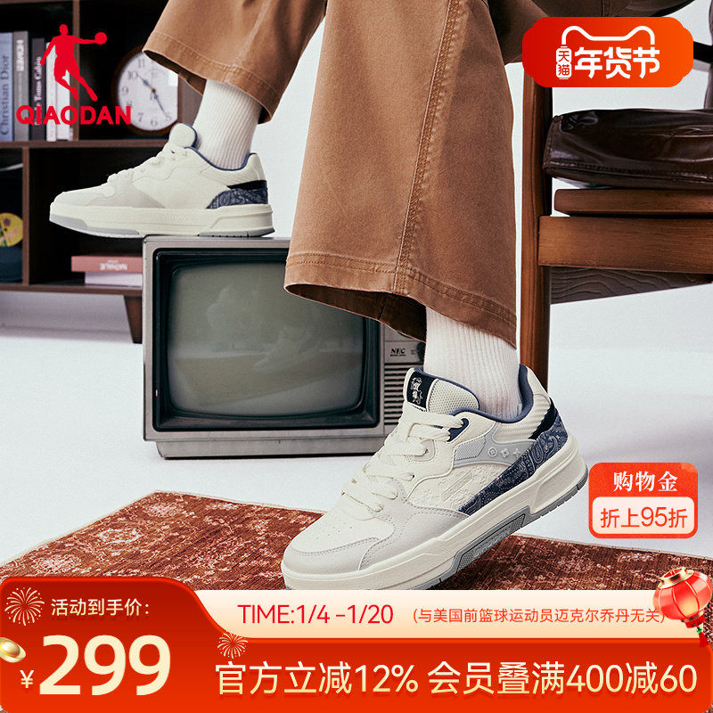乔丹蓝色腰果花潮流皮面男板鞋2025年冬季新款运动休闲鞋商场同款