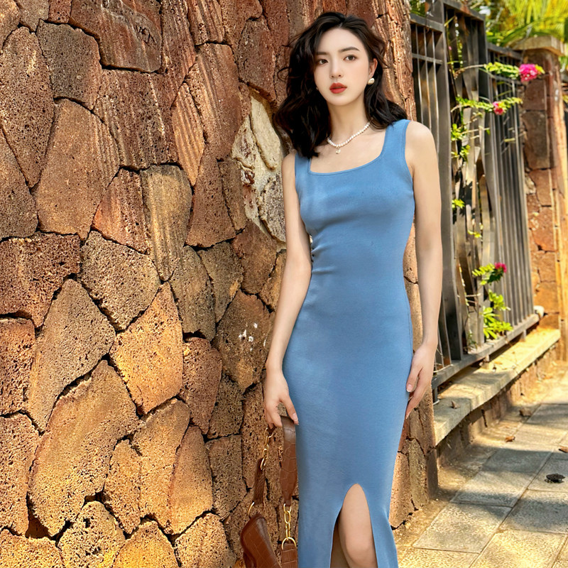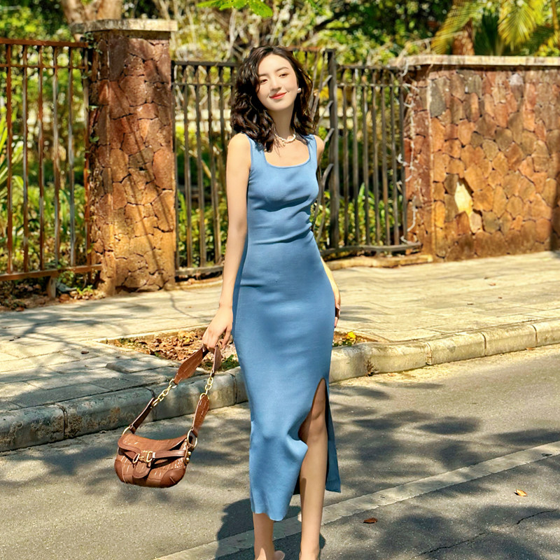夏季显瘦针织背心裙收腰修身旅游度假裙子包臀性感无袖连衣裙女