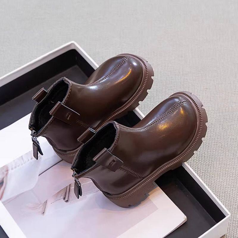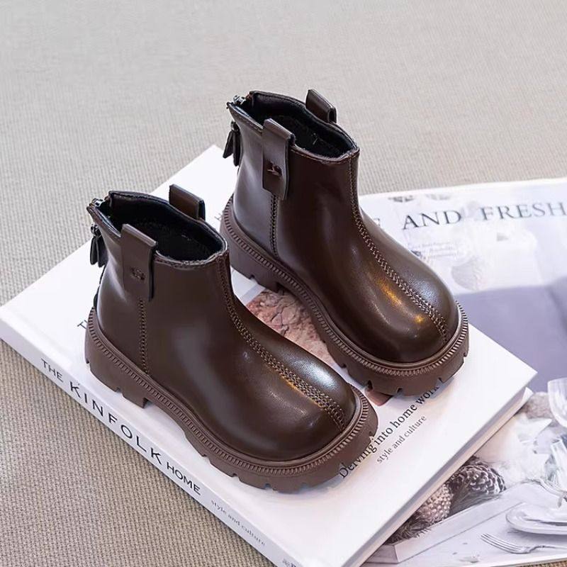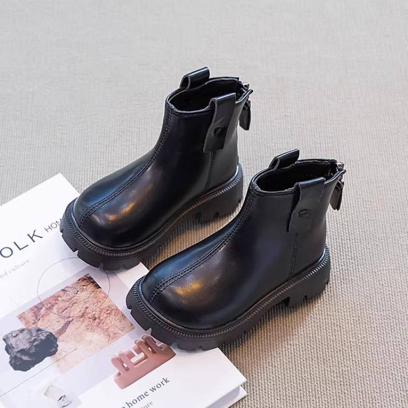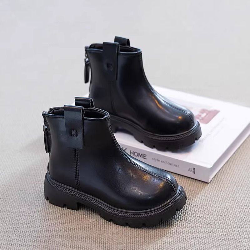 巴布豆女童靴子2025秋冬儿童短靴加绒马丁靴时尚百搭大棉靴潮黑色