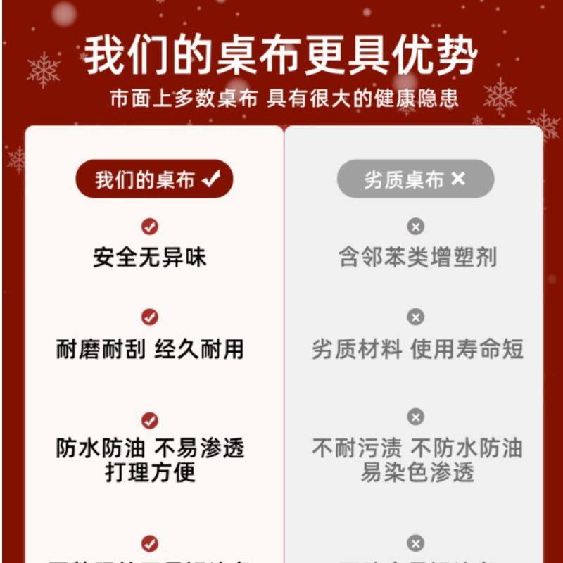 圣诞餐桌布2025新款氛围感红色桌布防水防油免洗装饰茶几台布跨年