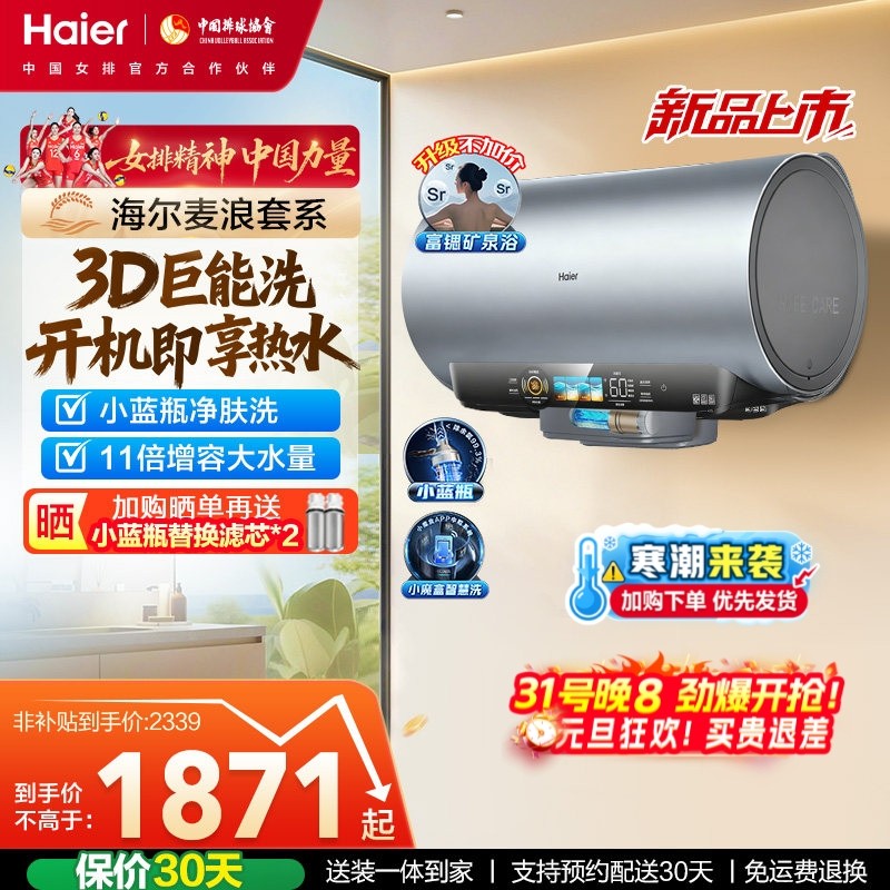 海尔麦浪电热水器小蓝瓶一级能效家用卫生间洗澡节能速热DR7pro