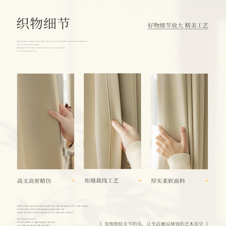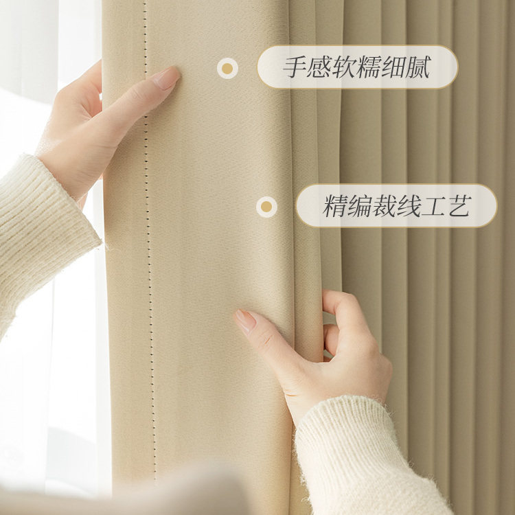 高级感全遮光窗帘客厅隔断帘挂钩圆孔式隔热防风帘卧室阳台出租房