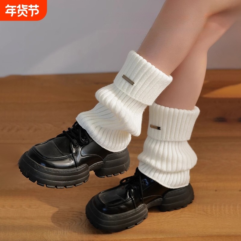 白色袜套女秋冬季日系y2k针织袜子女堆堆袜冬天长筒保暖小腿套袜