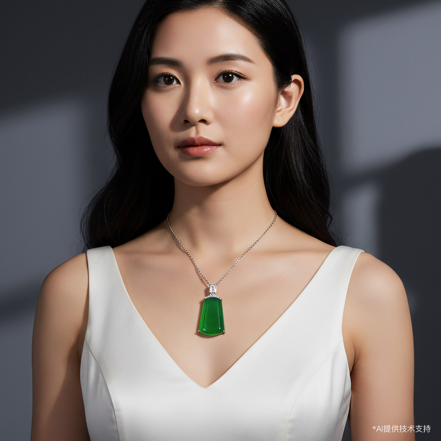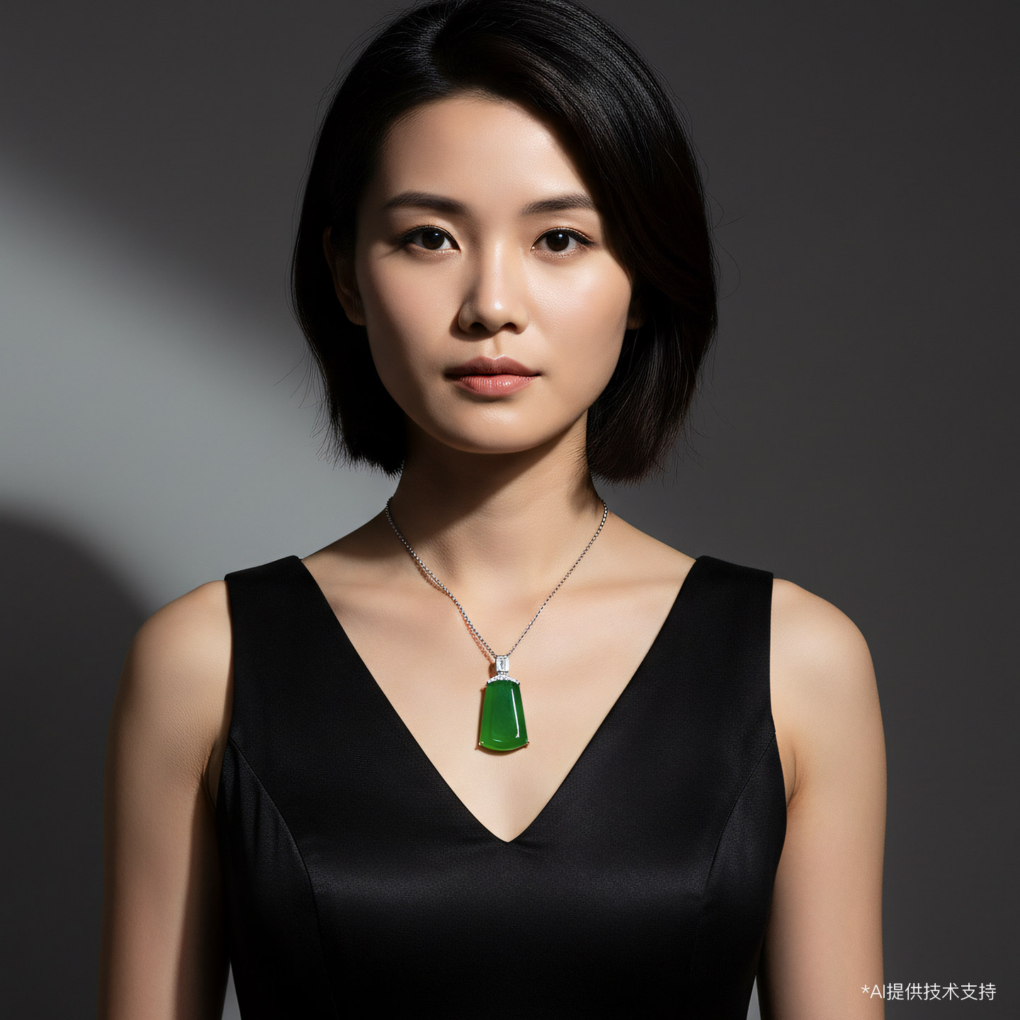 AILEQ 925银天然玉髓满绿绮平安无事牌吊坠珠宝蛇年货春夏项链K10