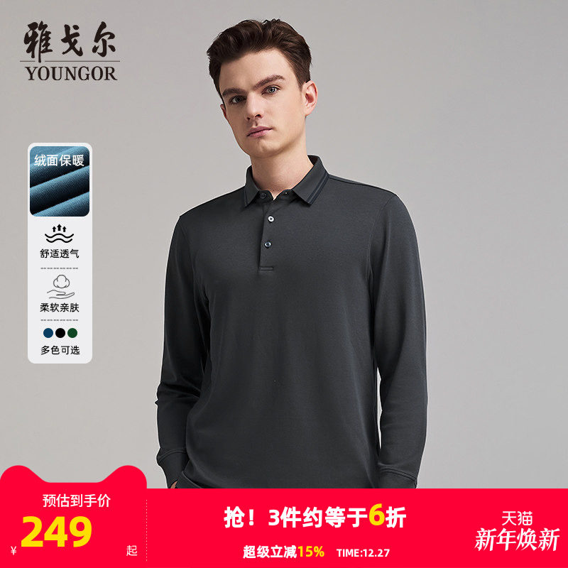 【莫代尔】雅戈尔秋冬男士长袖T恤商务休闲翻领宽松大码polo衫男