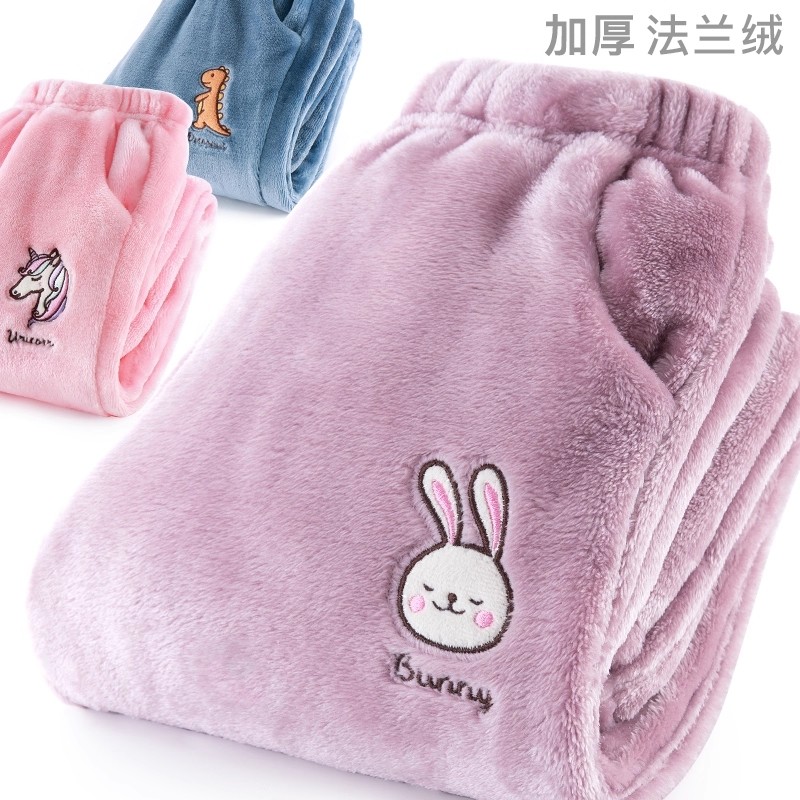 儿童睡裤珊瑚绒女童裤子秋冬男童法兰绒加绒加厚家居裤大童暖暖裤
