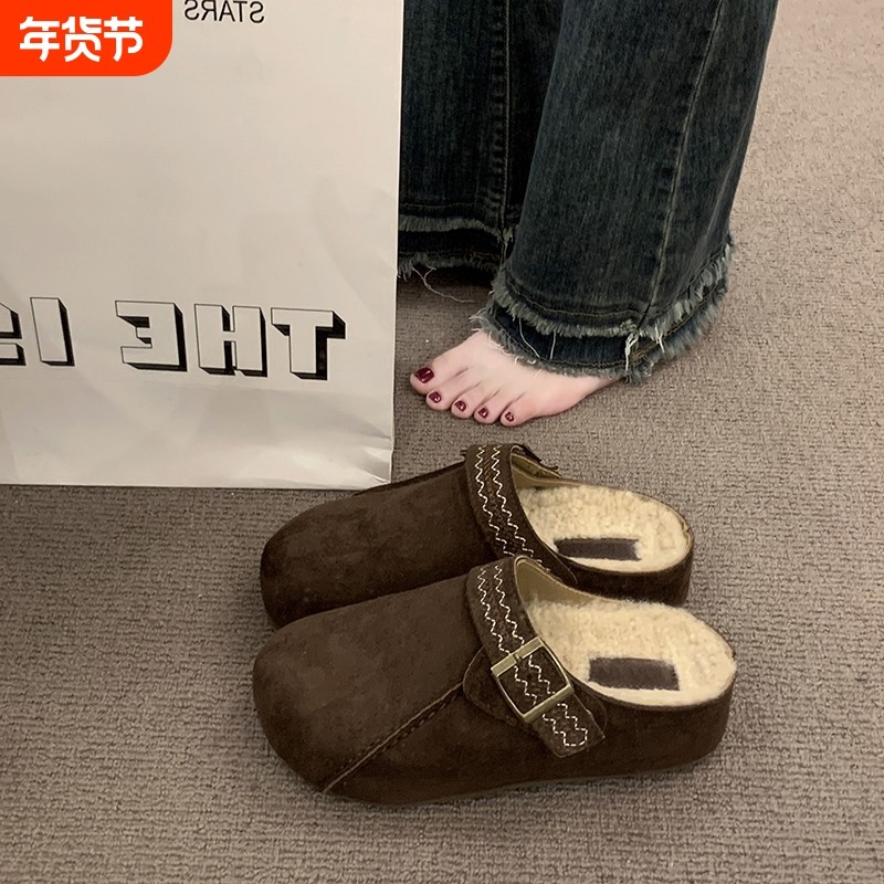 厚底勃肯鞋女2025新款冬季女鞋加绒半拖一脚蹬穆勒鞋子增高博肯鞋