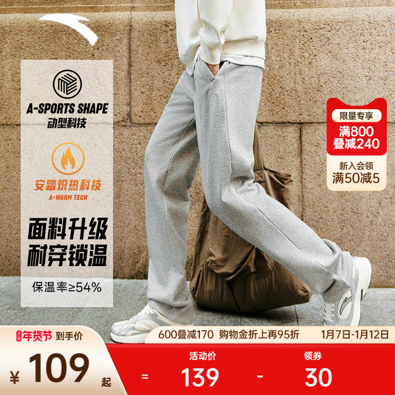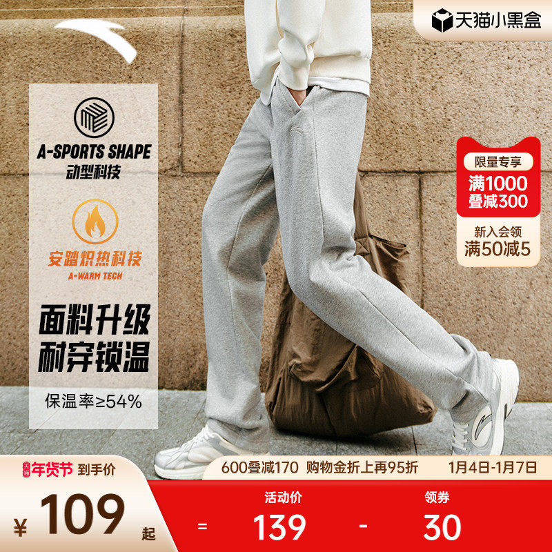 安踏男士冬季针织运动长裤舒适休闲裤加绒束脚卫裤收口通勤男裤子