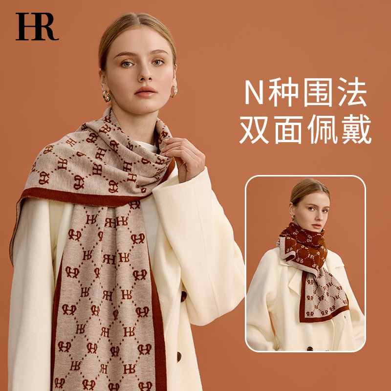 HR赫莲娜正品100%羊毛围巾女2025新款秋冬季高级感围脖披肩送女友
