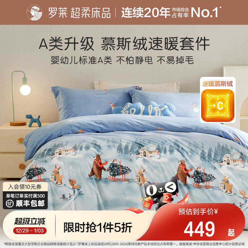 罗莱家纺儿童新款秋冬暖绒慕斯绒三件套学生宿舍床单被套四件套