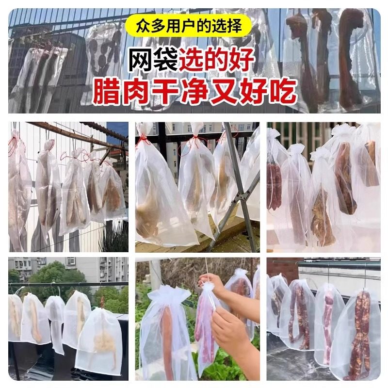 尼龙网晒腊肉防蝇网袋防虫纱网腊肠鸭干巴火腿加厚晾晒神器袋子