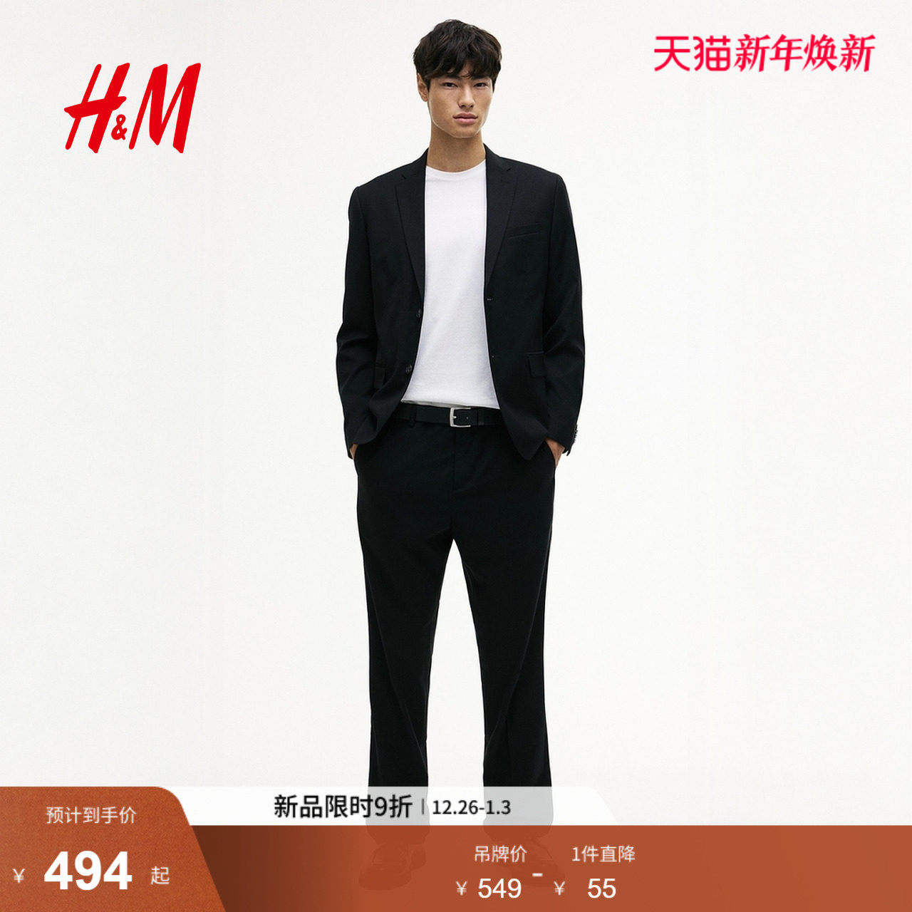 HM男装西装冬季职业通勤法式合身长袖商务正装西服外套1250484