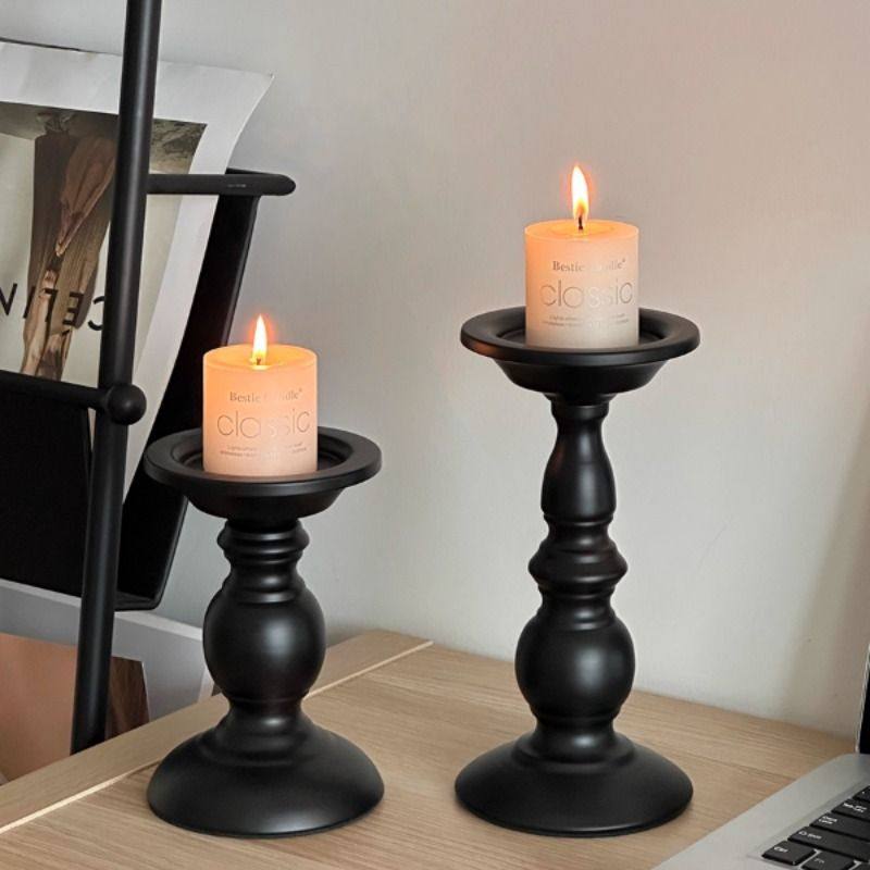 复古黑色罗马柱烛台铁艺摆件蜡烛香薰台座法式家用餐桌氛围感装饰