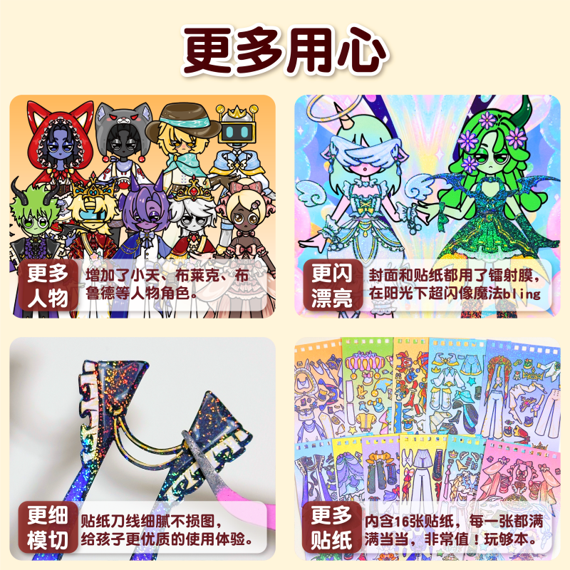 萌崽新款学霸学渣果冻贴纸安静书儿童免裁剪手工粘贴DIY女孩趣味玩具