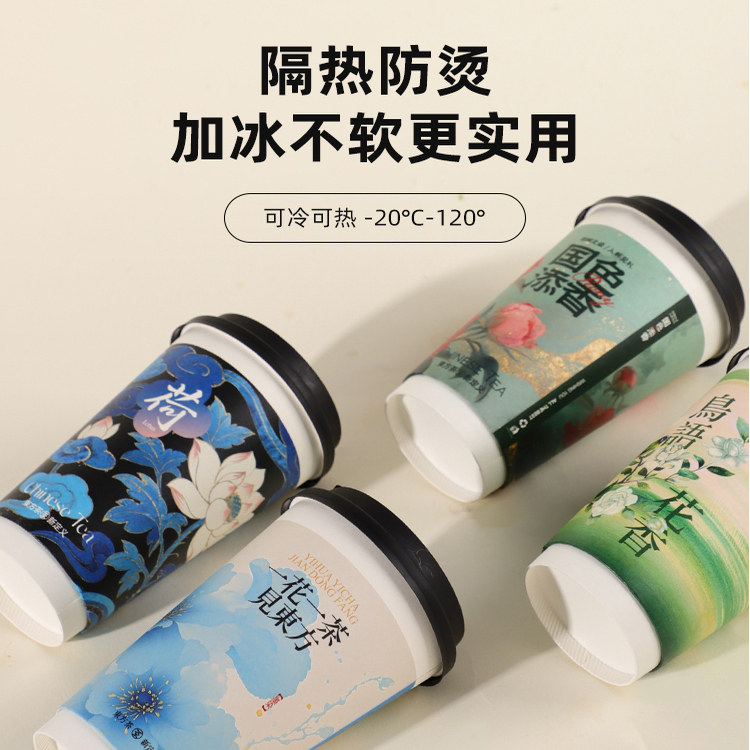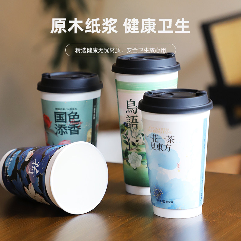 奶茶杯子一次性商用食品级加厚双层冷饮加冰打包专用国风热饮纸杯