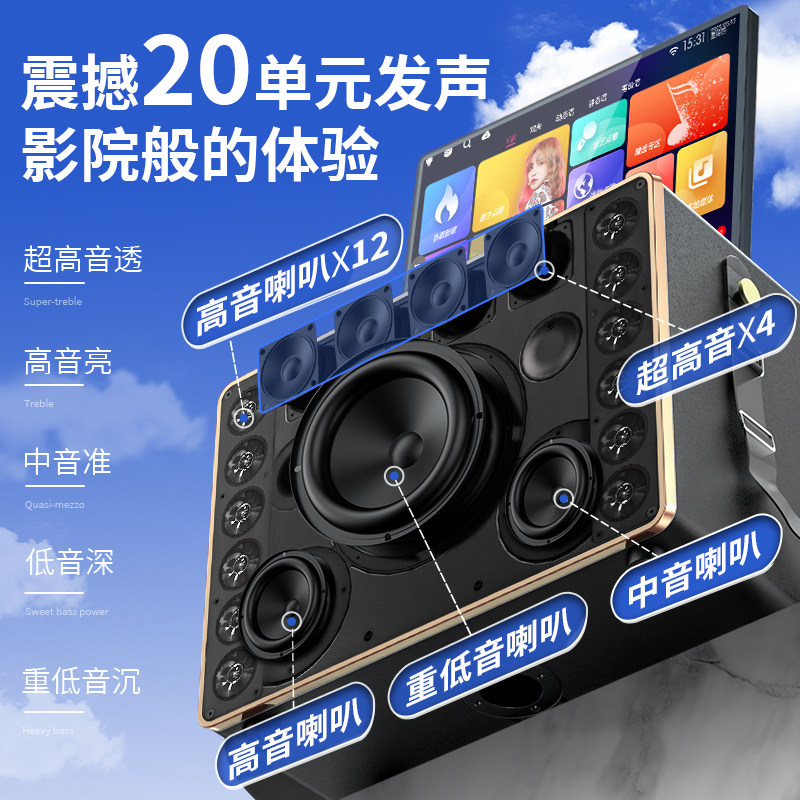 先飞户外K歌音响广场舞音箱带显示屏家庭KTV套装点歌一体机卡拉OK