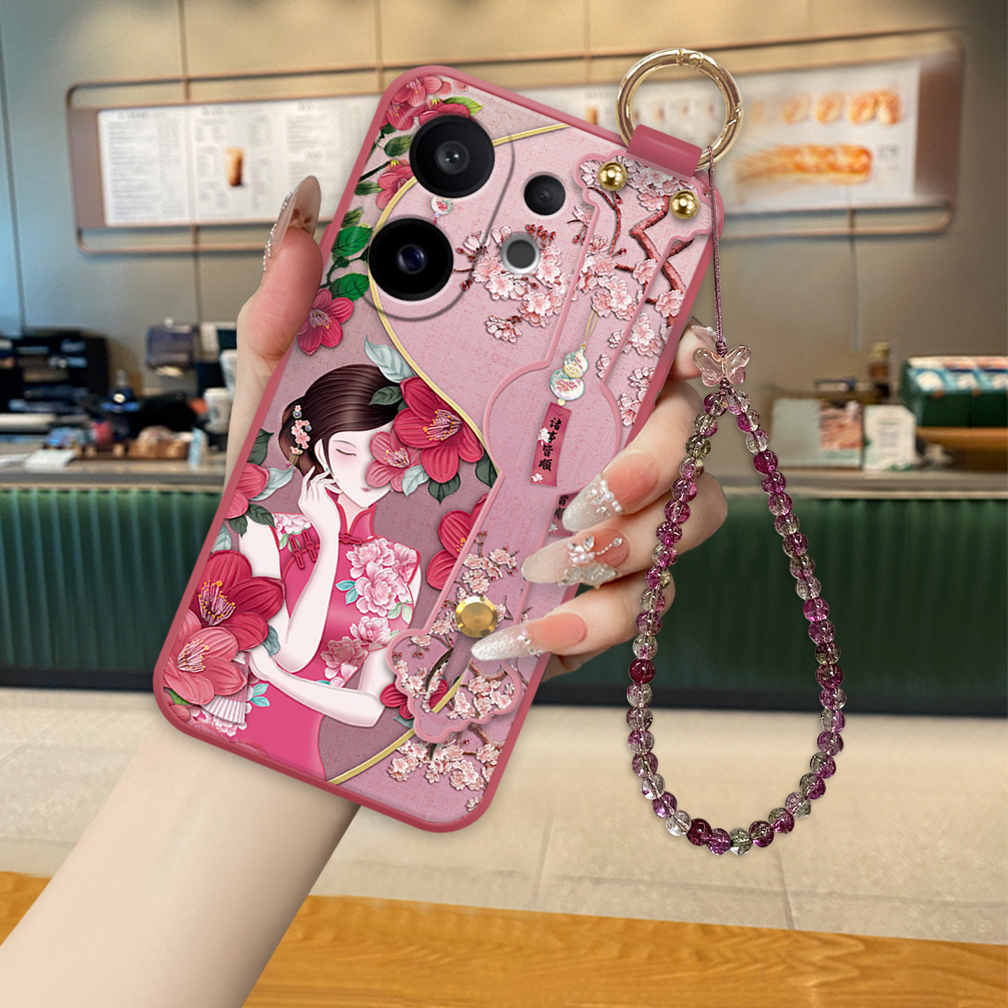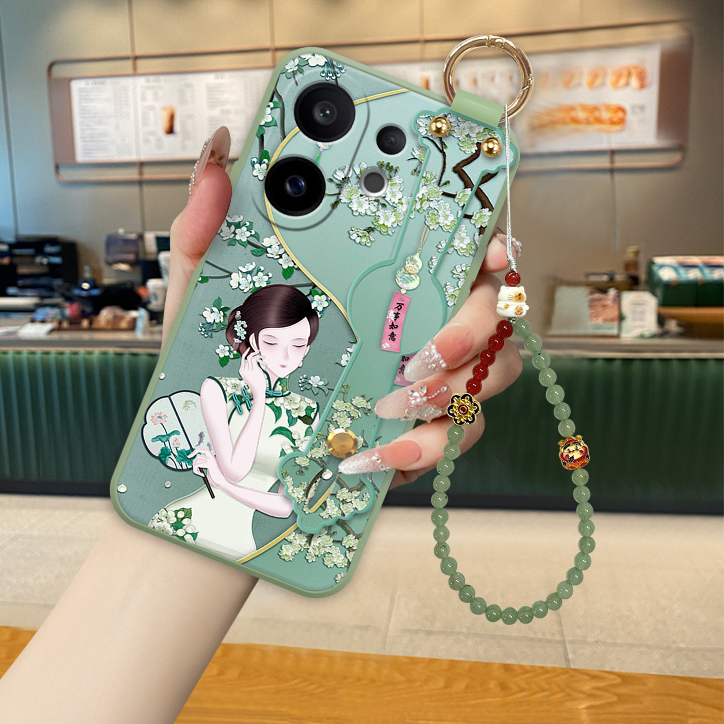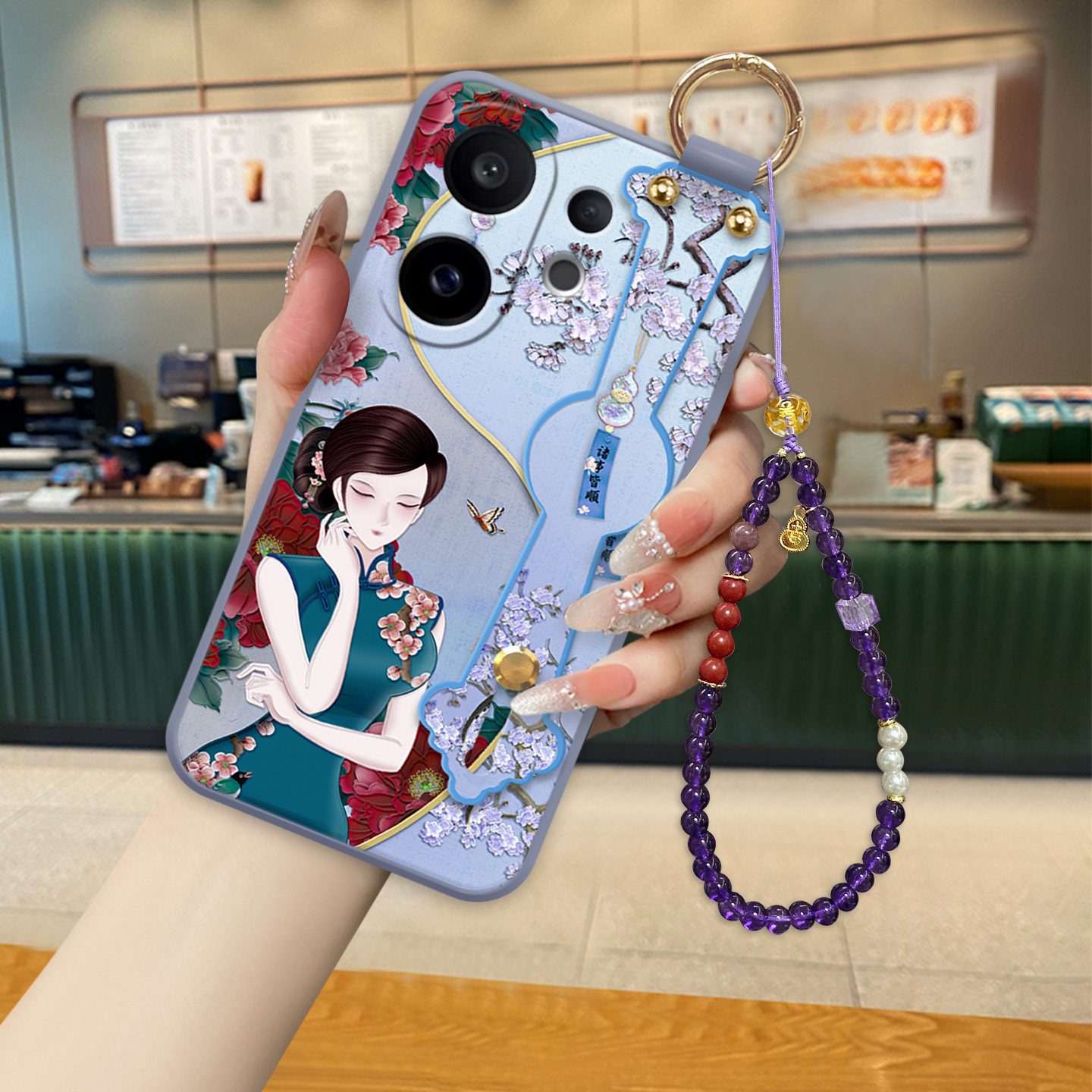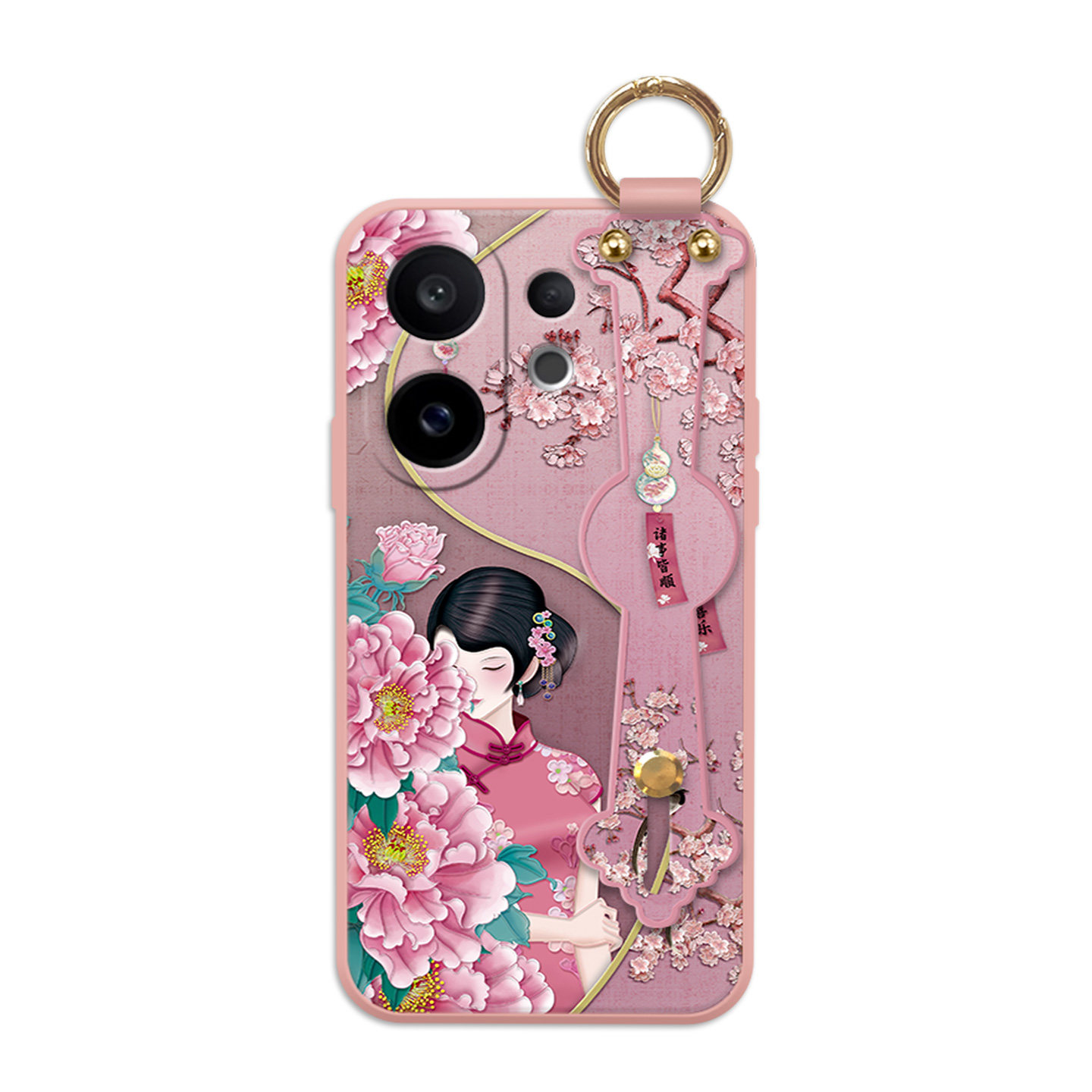 花鸟旗袍适用于vivoS30手机壳新款S30Promini个性创意S20Pro时尚复古s18Pro女款S17腕带斜挎全包防摔壳