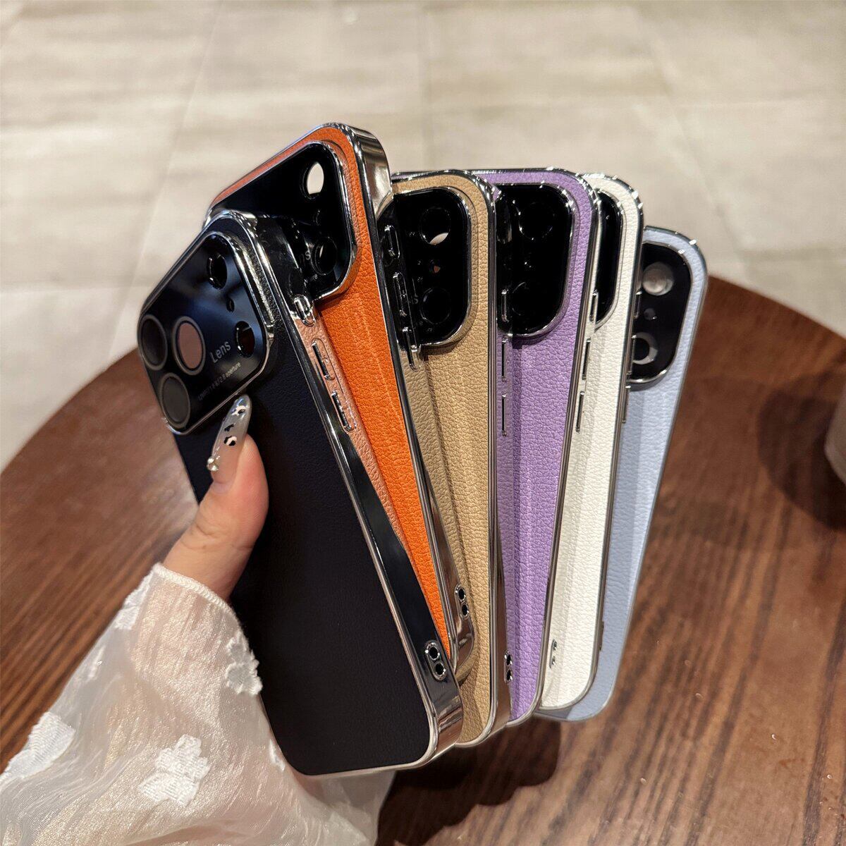 适用苹果17promax大视窗手机壳皮纹iPhone16pro保护套15pro高端商务男13/14电镀防摔12外壳高级感11奢华女新