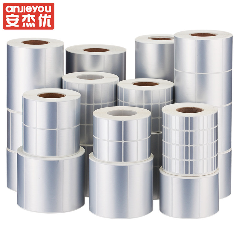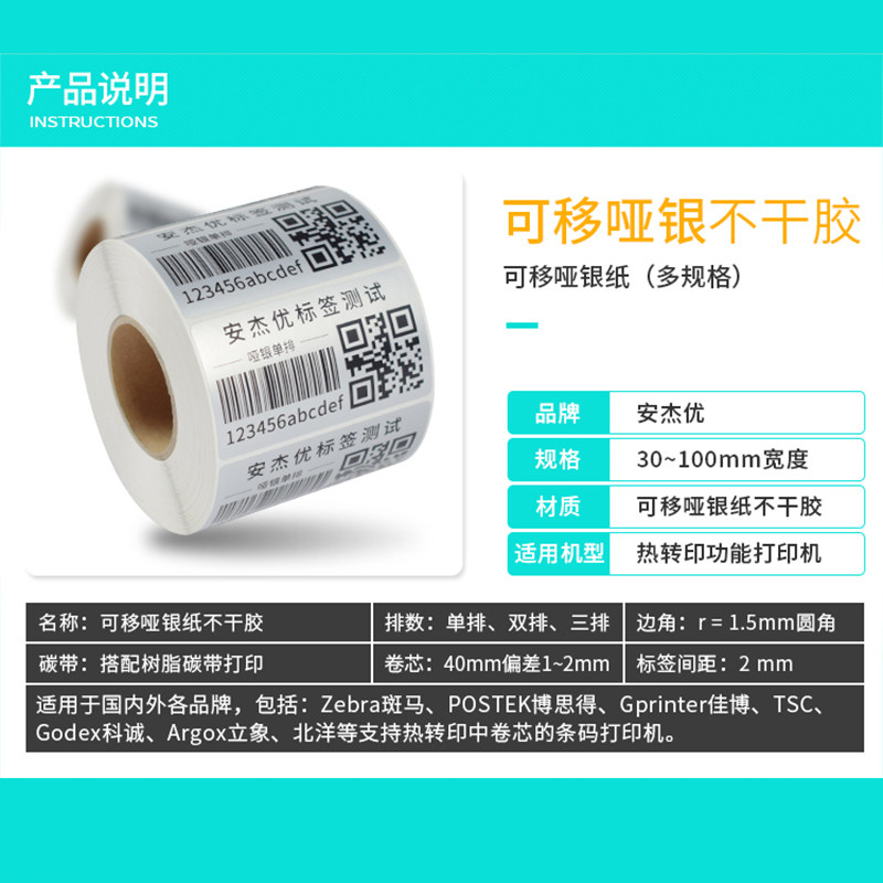 安杰优可移除纸亚银不干胶标签打印纸10*20 30 40 50 60 70 80 90防水防油易撕条码打印家具板材玻璃贴纸